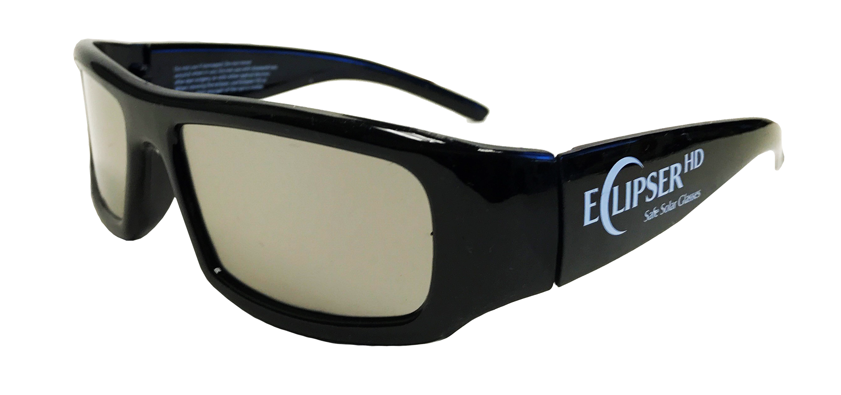 Our plastic Eclipser® HD glasses are independently tested and are ISO 12312-2 and CE certified for the safest direct solar viewing. Not only do they look red-carpet ready, but our plastic Eclipser® HD glasses are manufactured exclusively with scratch resistant polymer (black/silver) material and have an optical density of 5 or greater. These Eclipser® HD Glasses filter out 100% of harmful ultra-violet rays, 100% of harmful infrared, and 99.999% of intense visible light.